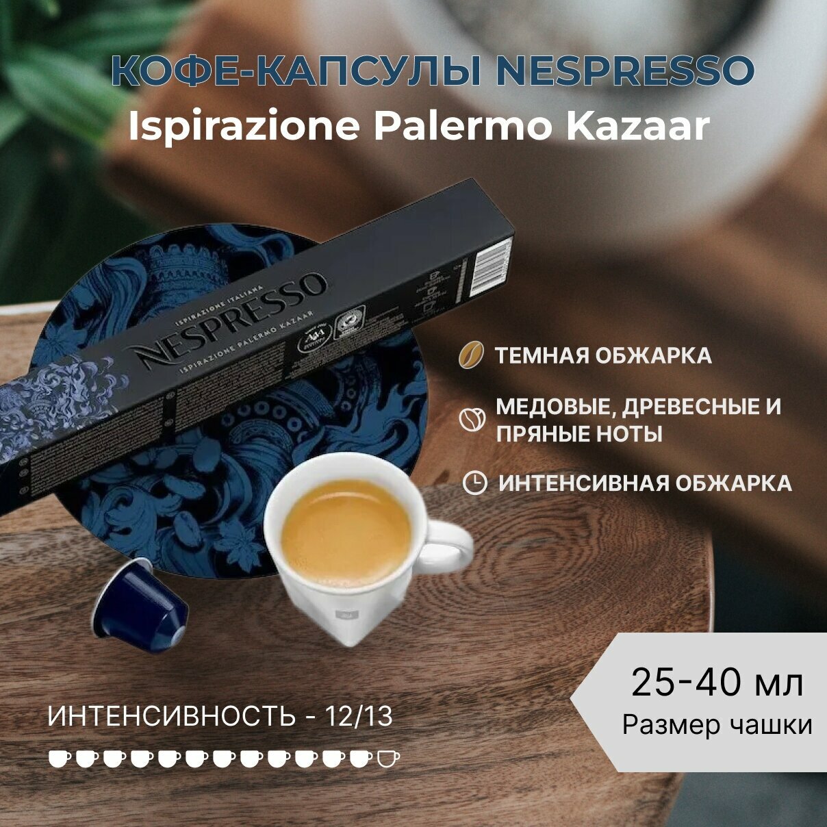 Кофе в капсулах Nespresso Ispirazione Palermo Kazaar 25-40мл. 12/13 набор капсул Неспрессо Original 10 шт