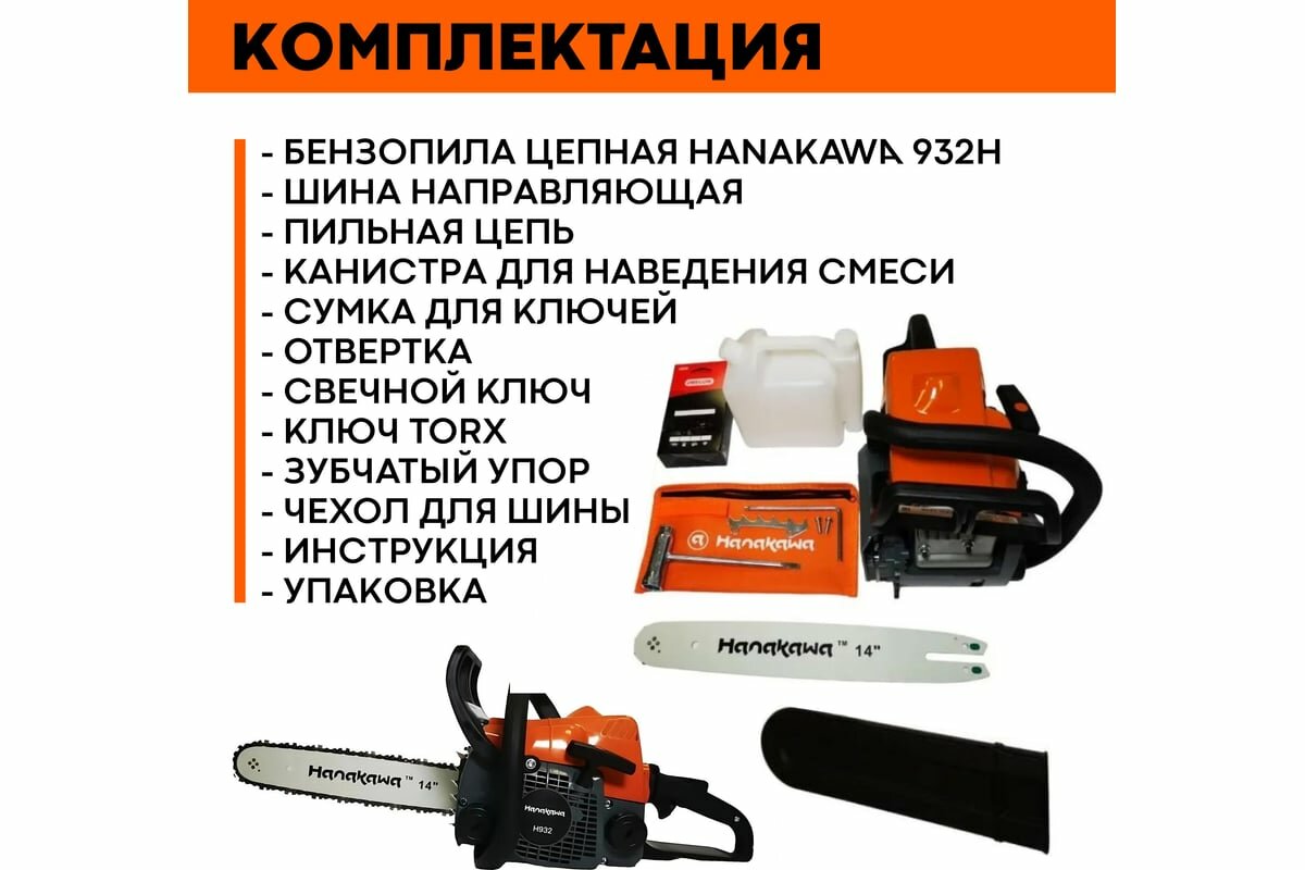 Бензопила HANAKAWA H932 (MS180) шина 35 см (14"), цепь 3/8" 1,3 50 звеньев 932H интересное: