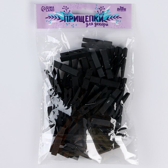 Купить Лесная мастерская Набор прищепок для декора 50 шт, чёрные — 3,5 см