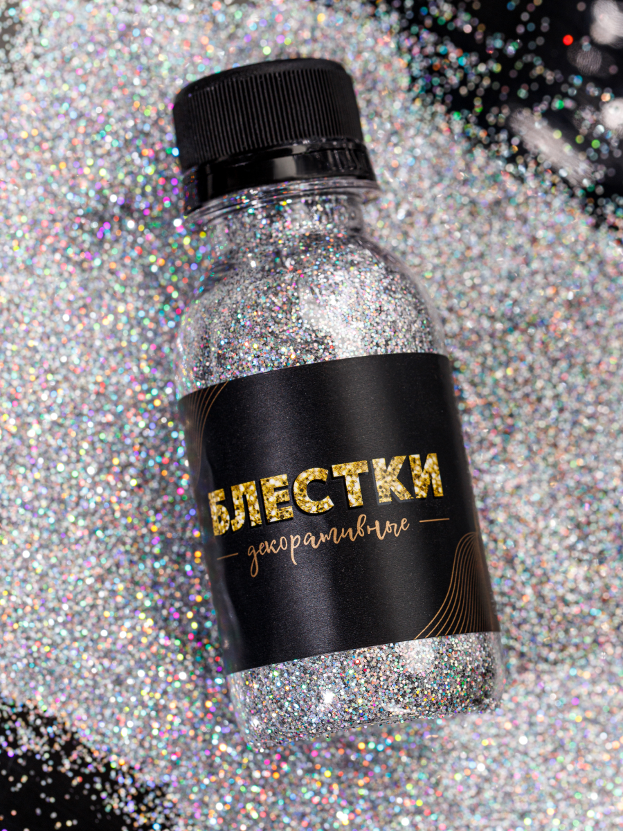 Глиттер блестки для декора и творчества 100 гр. серебряные 0.2 мм глиттерика 100 мл