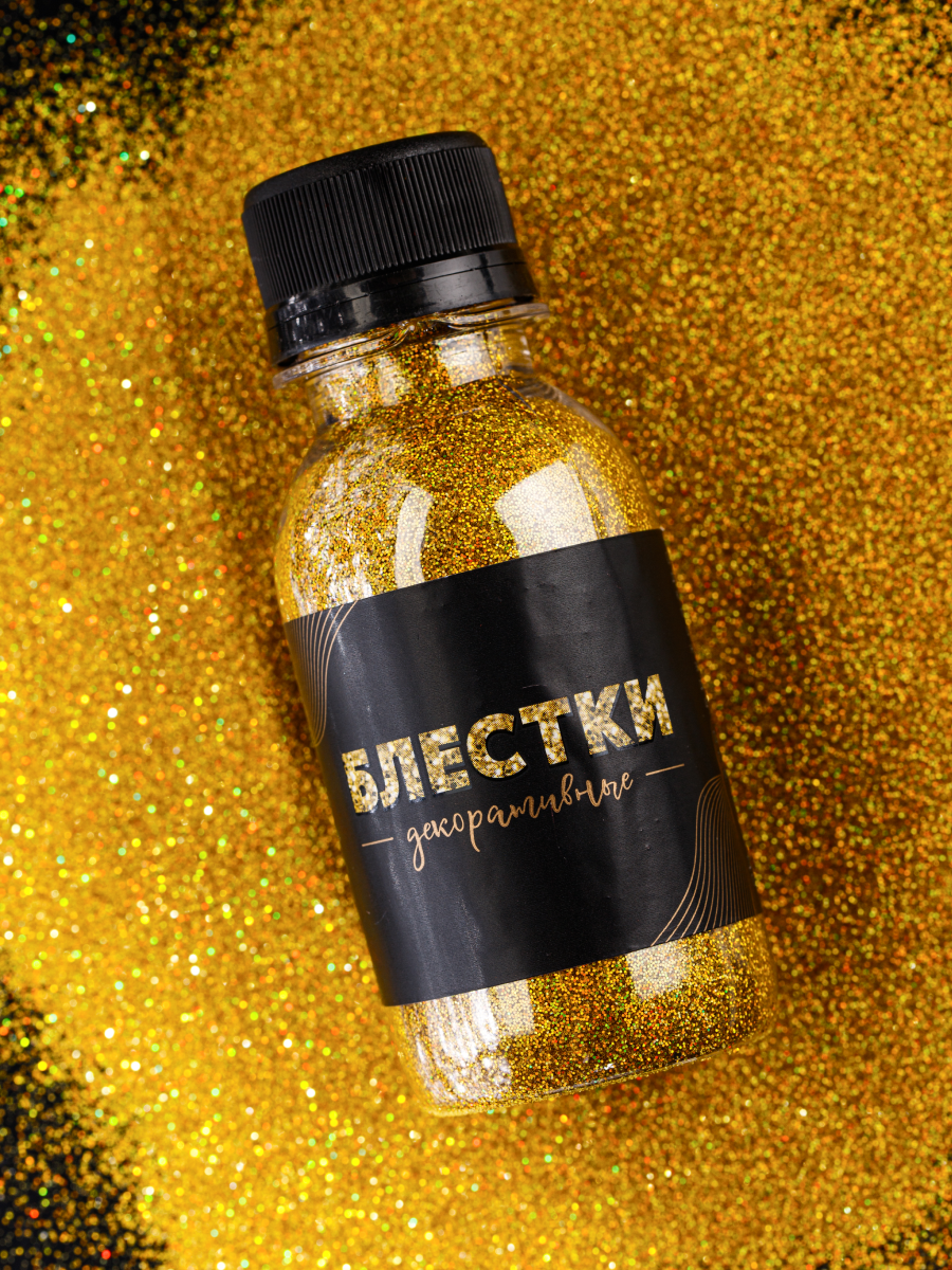 Купить Блестки декоративные золотые Глиттер для творчества голографический 100 мл