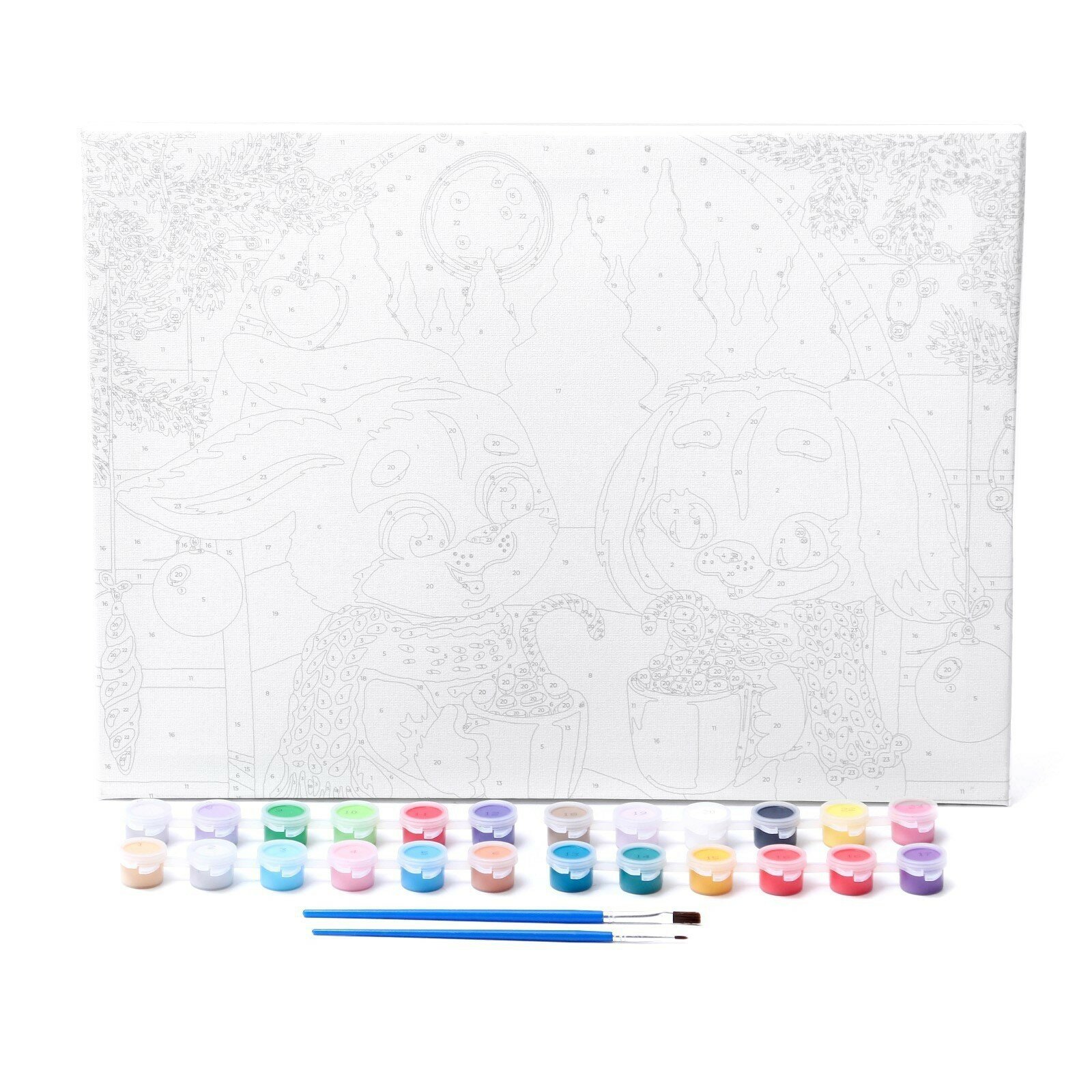 Картина по номерам на новый год на холсте с подрамником "Милые зверята с подарками", 40 x 50 см