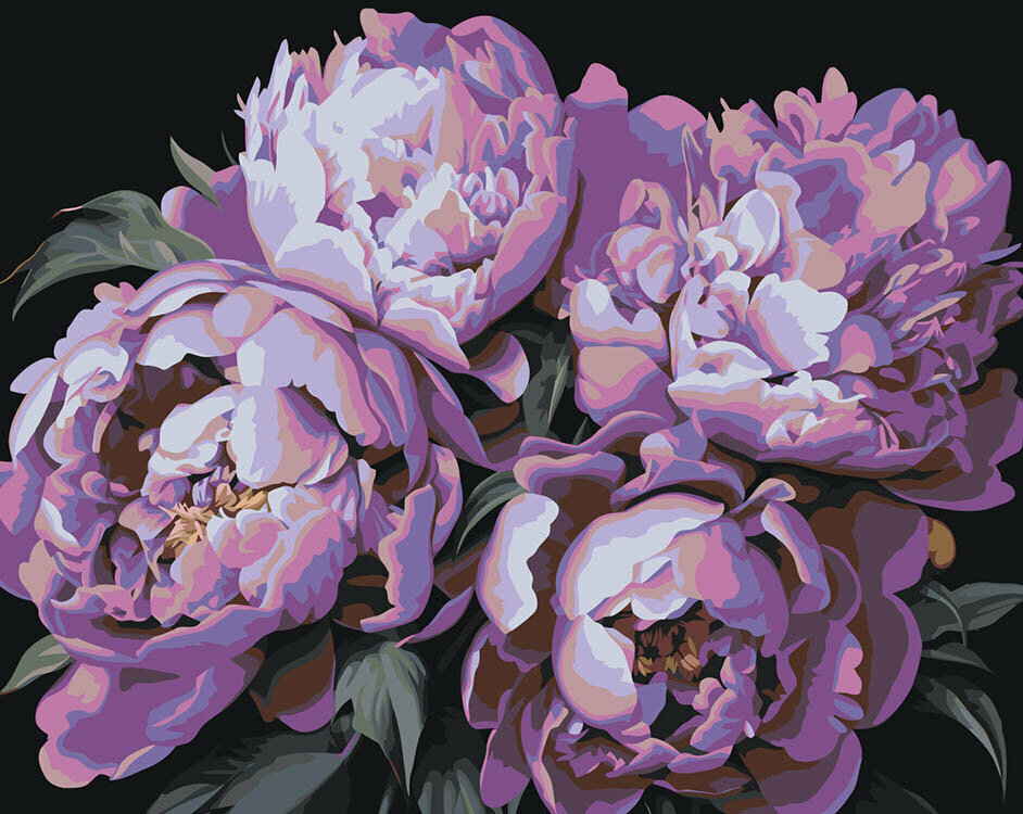 Картина по номерам на холсте с подрамником "Цветы: Композиция из пионов в темных тонах" Раскраска 40x50 см, Растения