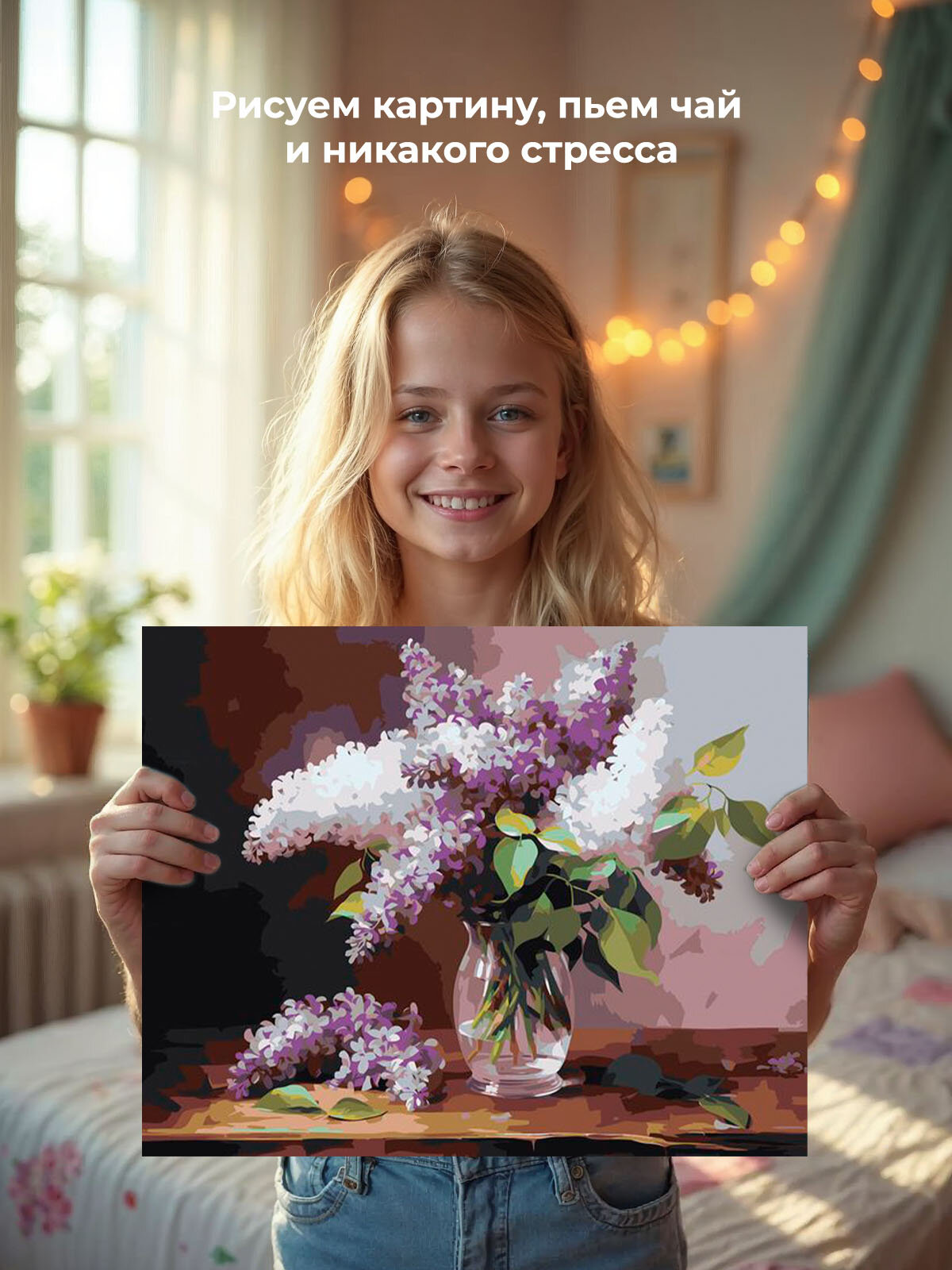Купить Картина по номерам на холсте с подрамником "Цветы: Букет сирени на столе" Раскраска 40x50 см, Растения