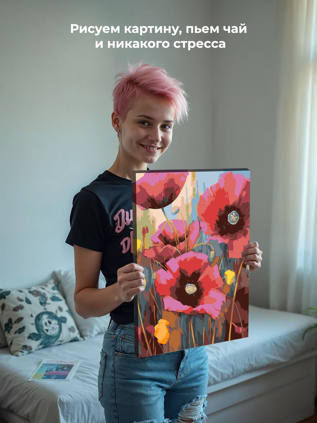 Купить Картина по номерам на холсте с подрамником "Цветы: Изящные маки" Раскраска 40x50 см, Растения