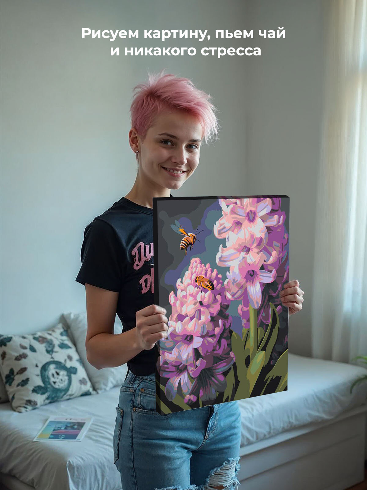 Купить Картина по номерам на холсте с подрамником "Цветы: Гиацинты и пчелы" Раскраска 40x50 см, Букет Насекомые