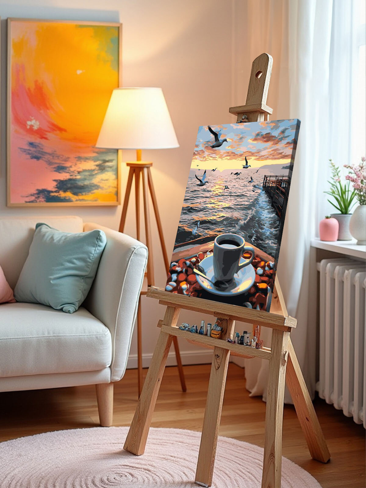 Картина по номерам на холсте Море Кофе на берегу 2 40x50