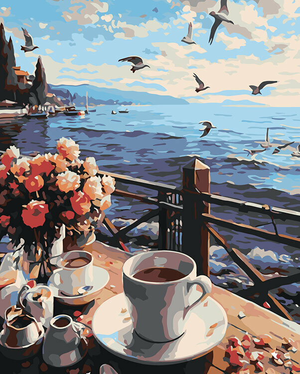 Картина по номерам на холсте Море Кофе на берегу 40x50