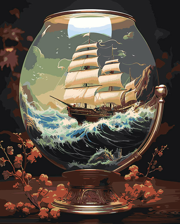 СохранитьКартина по номерам на холсте с подрамником "Море: Корабль-парусник в бокале" Раскраска 40x50 см, Техника интересное: