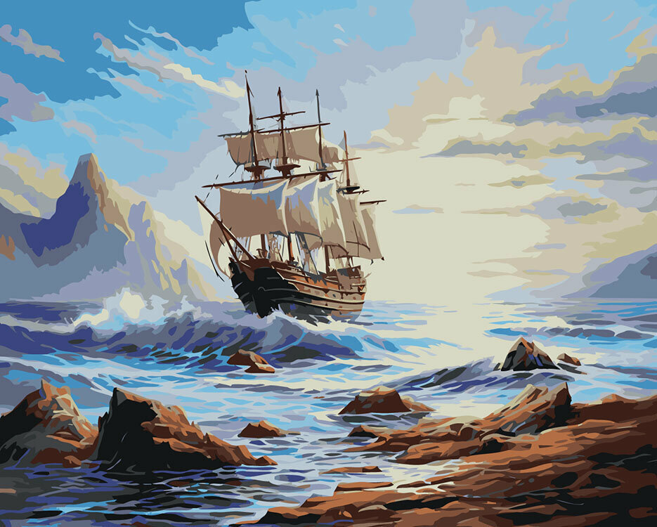Картина по номерам на холсте с подрамником "Море: Корабль на волнах 2" Раскраска 40x50 см, Природа