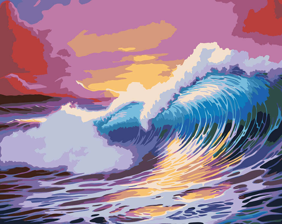 СохранитьКартина по номерам на холсте с подрамником "Море: Красочные волны" Раскраска 40x50 см, Природа интересное:
