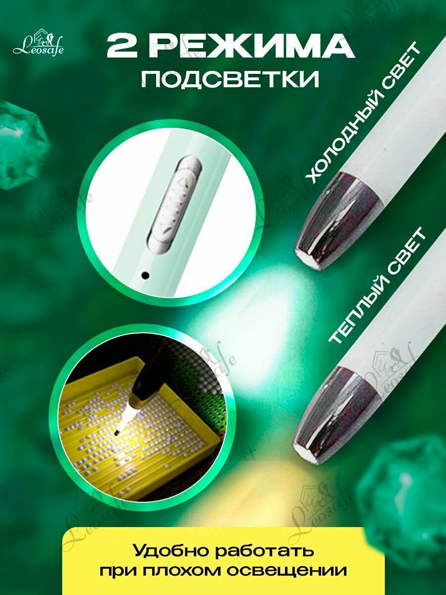 Стилус для алмазной мозаики с подсветкой, ручка для вышивки стразами, набор для рукоделия и творчества