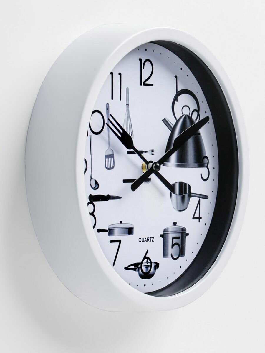 Часы настенные, для кухни, "Кухонные приборы", бесшумные, d-20 см