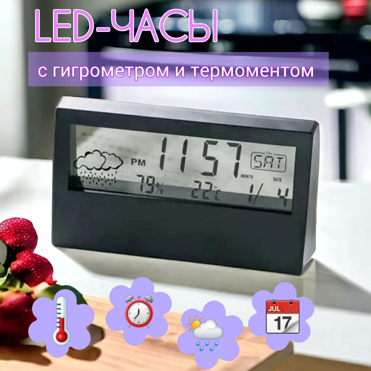 Часы MI-CN, для офиса, многофункциональные, будильник, LCD, пластик, черные интересное: