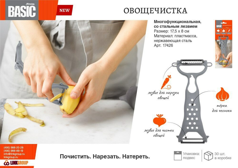 Овощечистка Marmiton BASIC многофункциональная со стальным лезвием 175х8 см 17426 интересное: