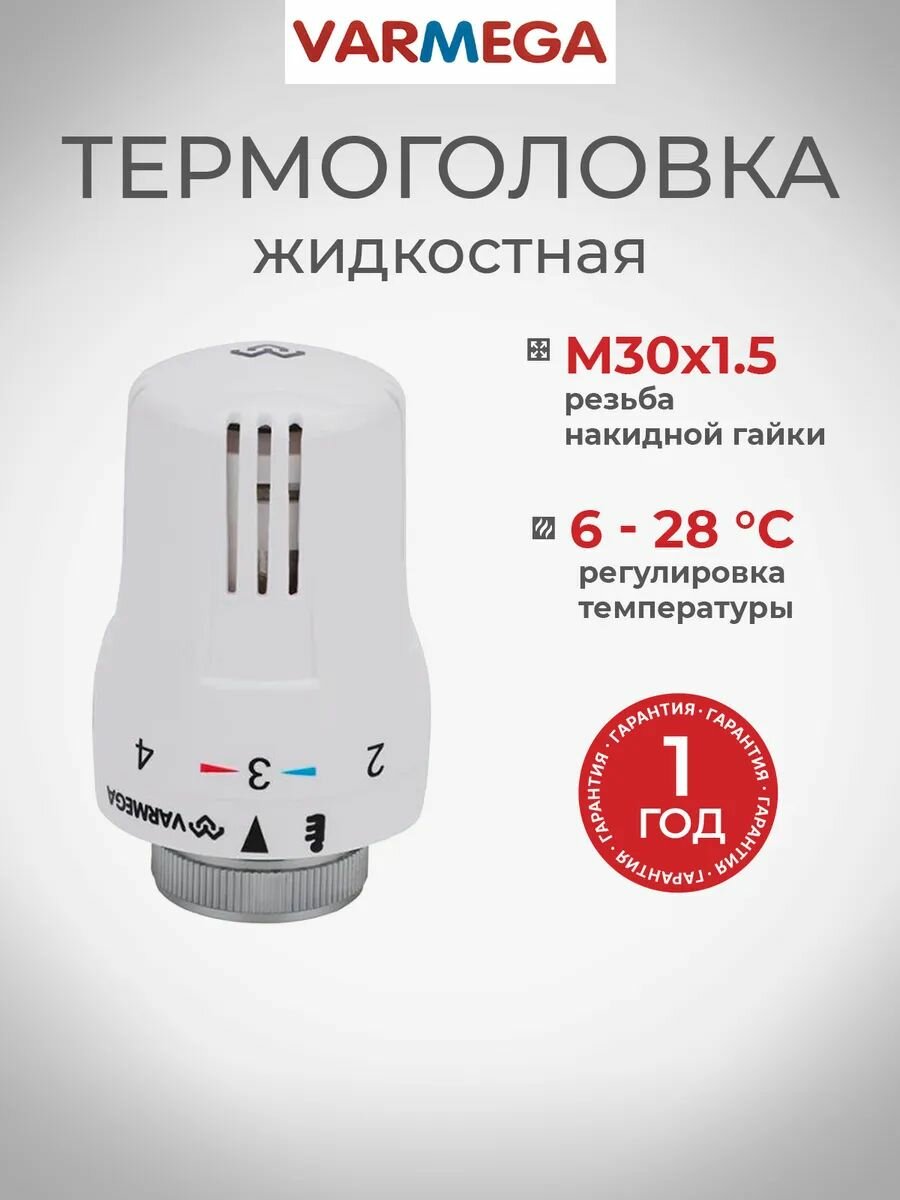 Термостатическая головка VARMEGA, серия VM111, жидкостная М30х1,5, белая интересное: