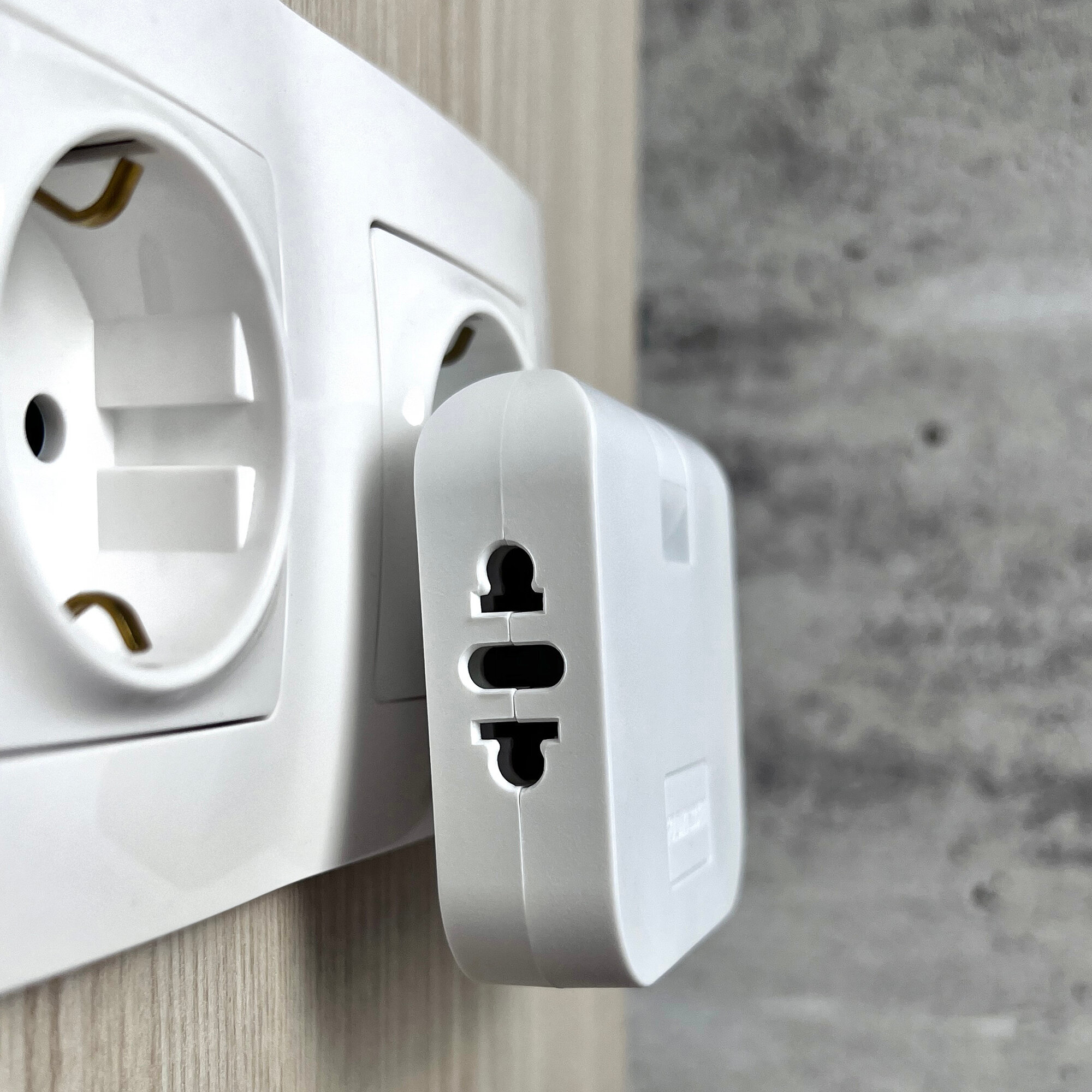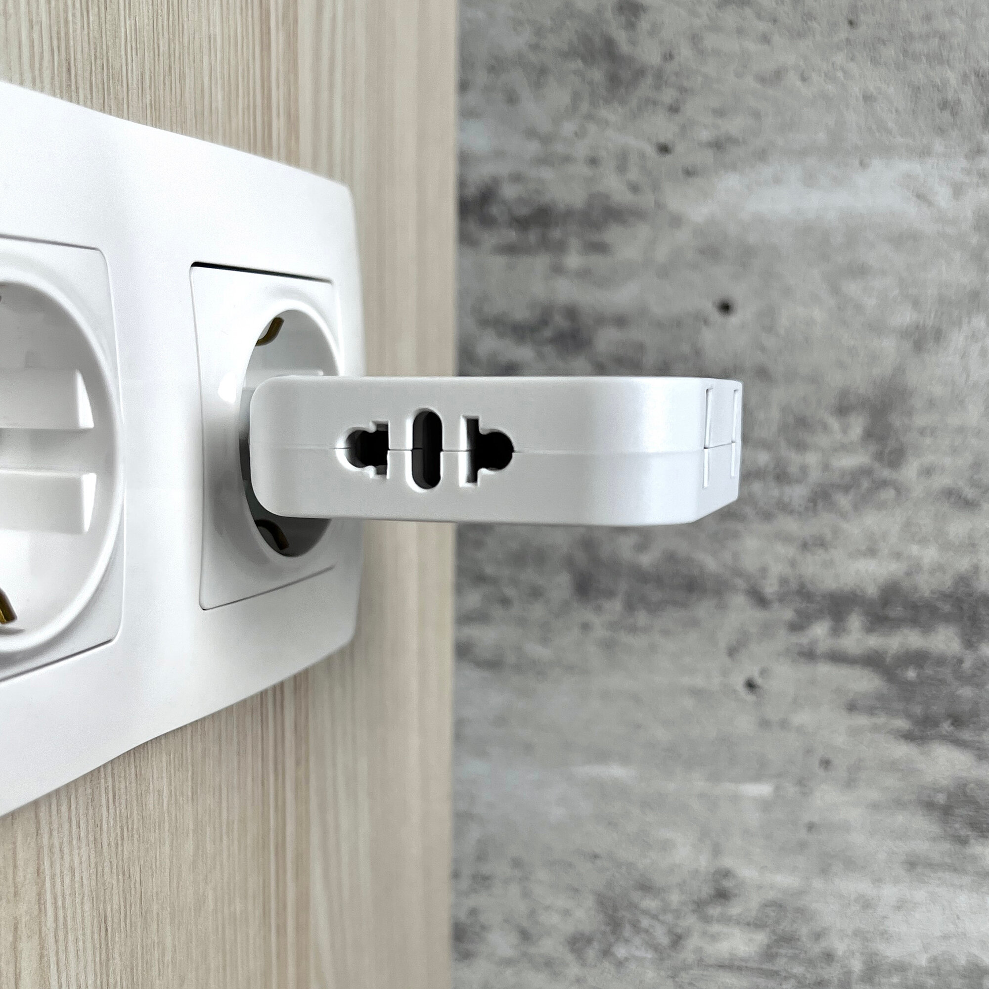 Тройник для розетки электрический с заземлением 16А, белый