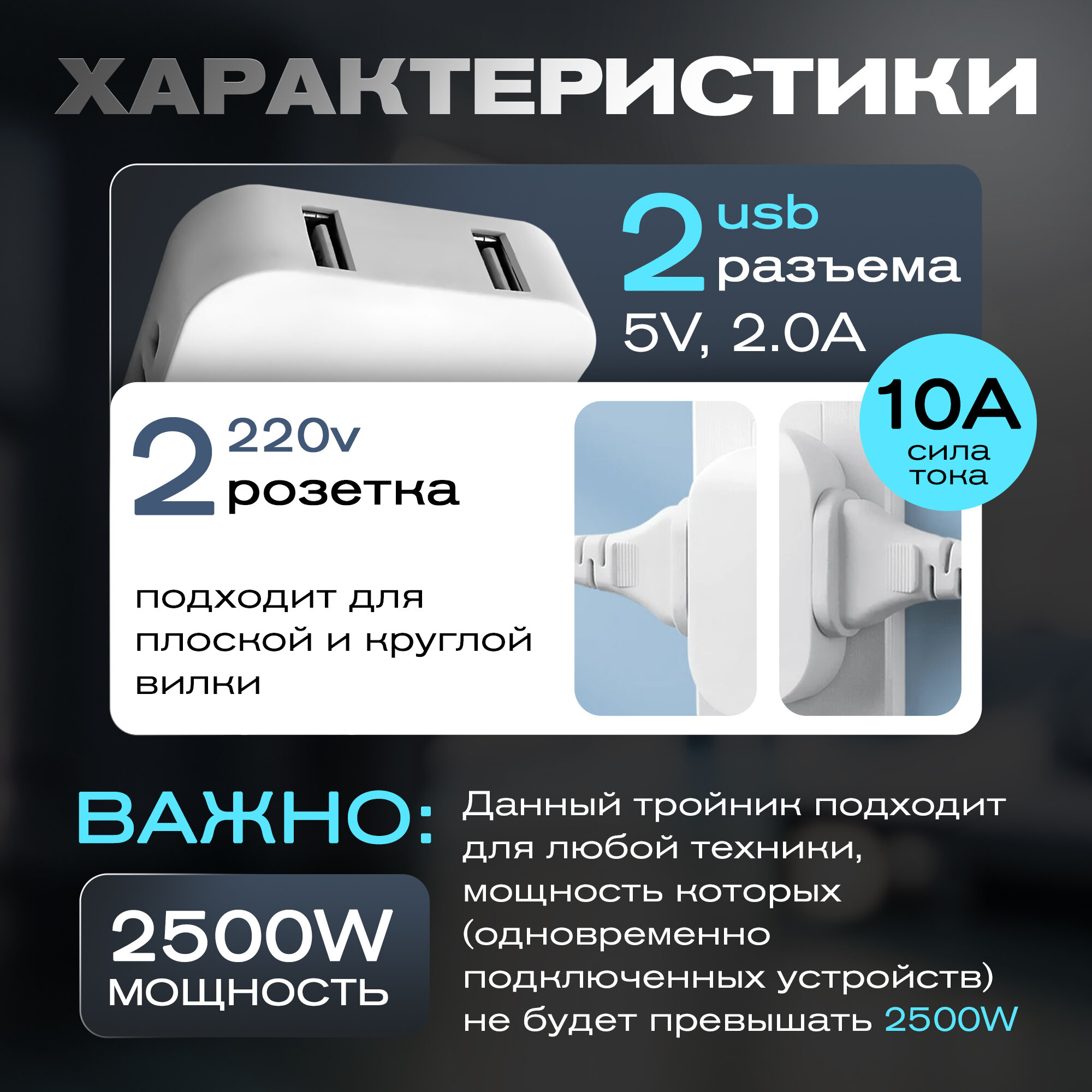Поворотный тройник для розетки с USB, WALКЕR, WH-04, 1 шт, 2500 Вт, 2 USB, переходник с китайской вилки, переходник для розетки, тройник с usb, белый интересное: