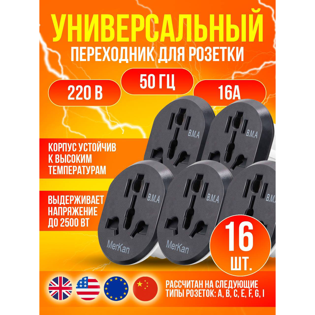 Универсальный переходник Merkan 16А - 16 шт., Серый