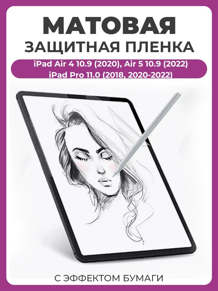 Защитная пленка с эффектом бумаги для Apple iPad Air 4 10.9 (2020) , iPad Air 5 10.9 (2022), iPad Pro 11.0 2018, 2020-2022 матовая интересное: