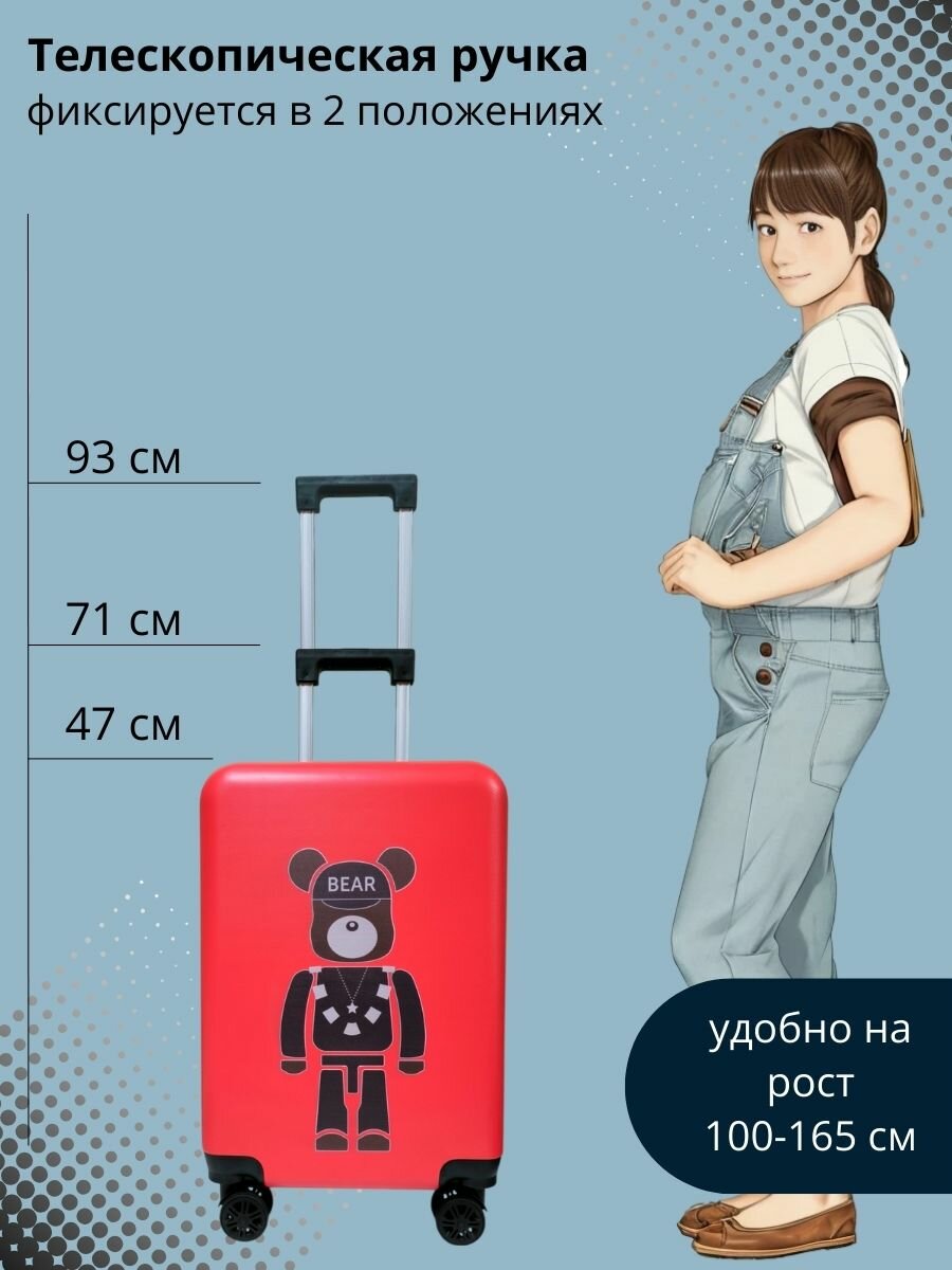 Дорожный чемодан детский на колесиках, ручная кладь размера XS арт. 712 Медведь, синий