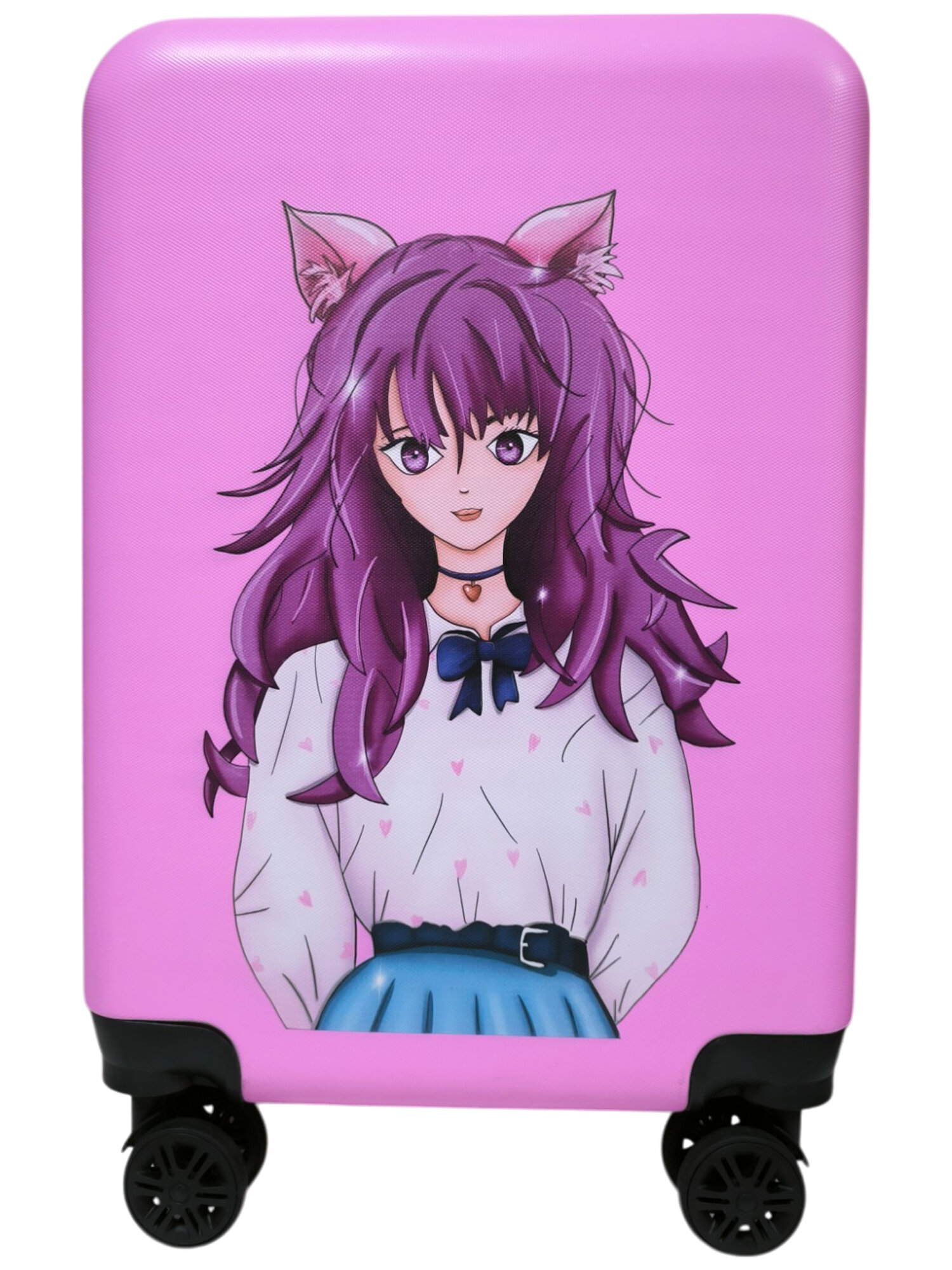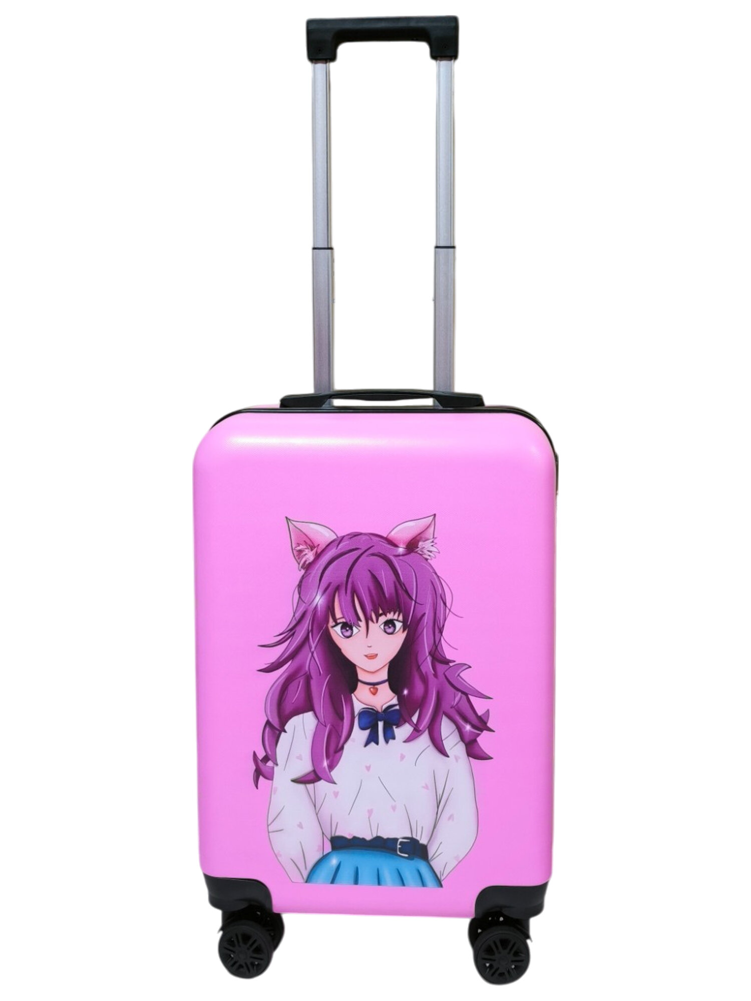Чемодан дет. Котик 20", 35х20х40, отд. на молнии, 4 колеса, розовый