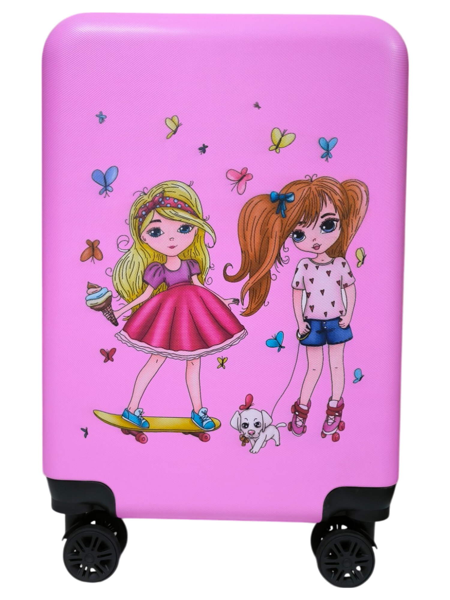 Дорожный чемодан детский на колесиках, ручная кладь размера XS арт. 706 Кот в кармане, розовый
