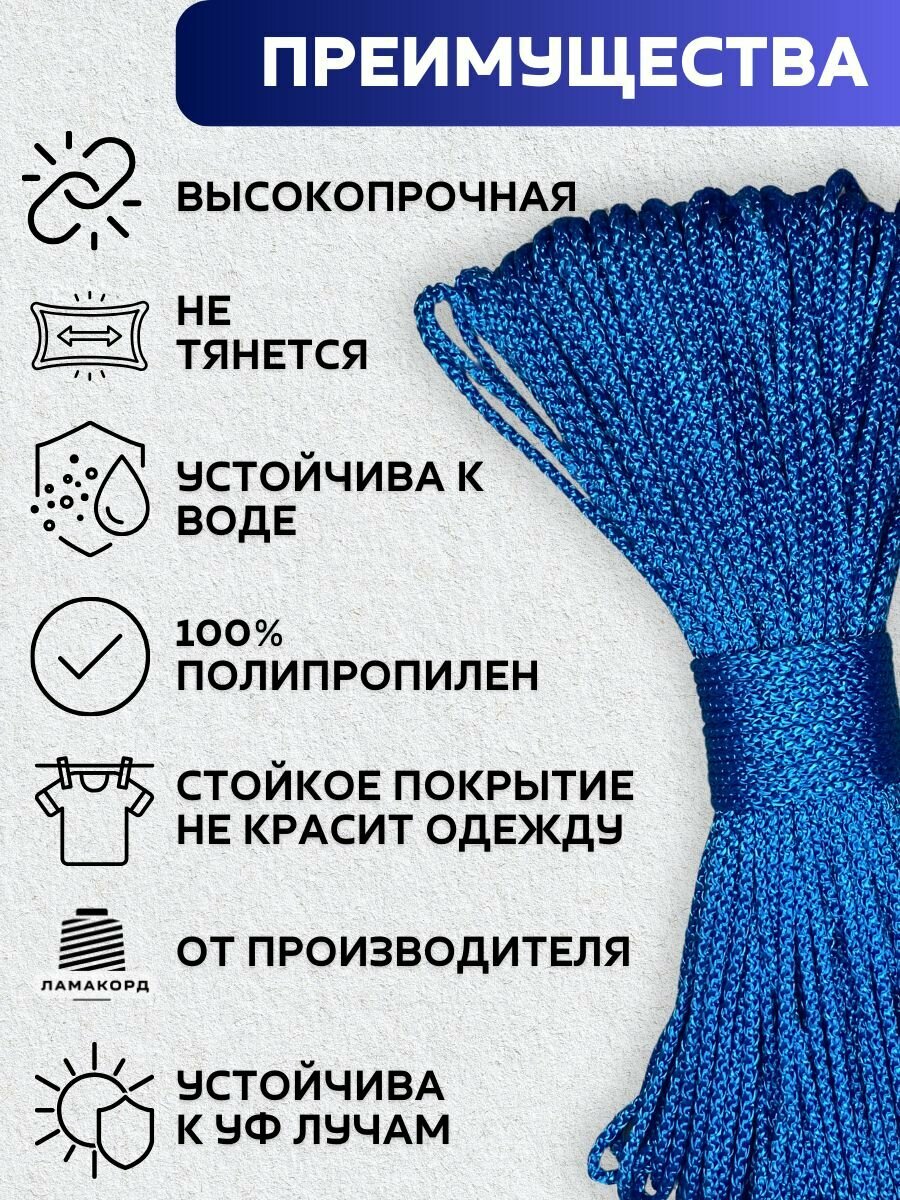 Веревка бельевая 4 мм 50 м синяя. Шнур бельевой вязаный полипропиленовый с сердечником