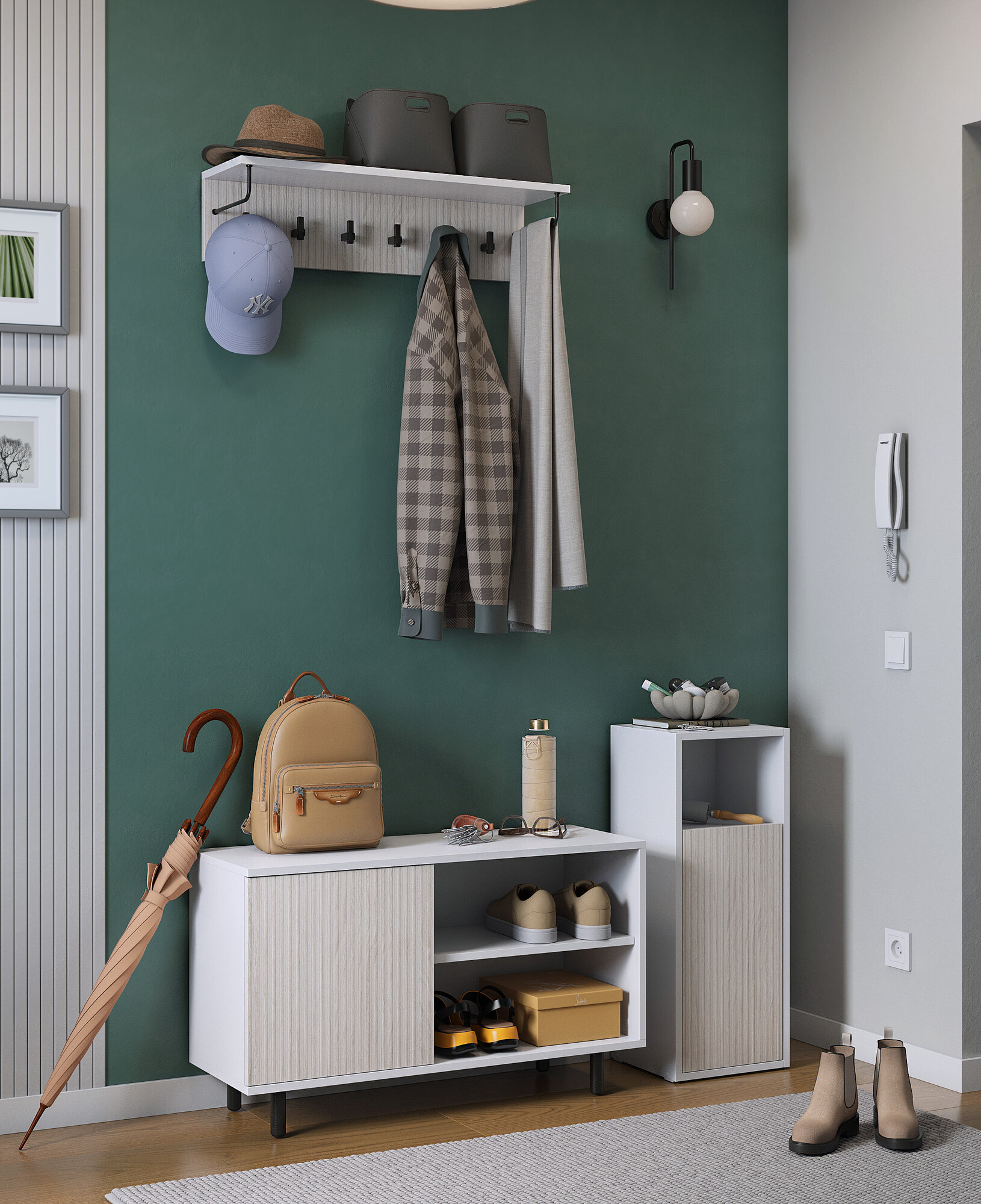 Вешалка полка настенная в прихожую Белая Крафт 5