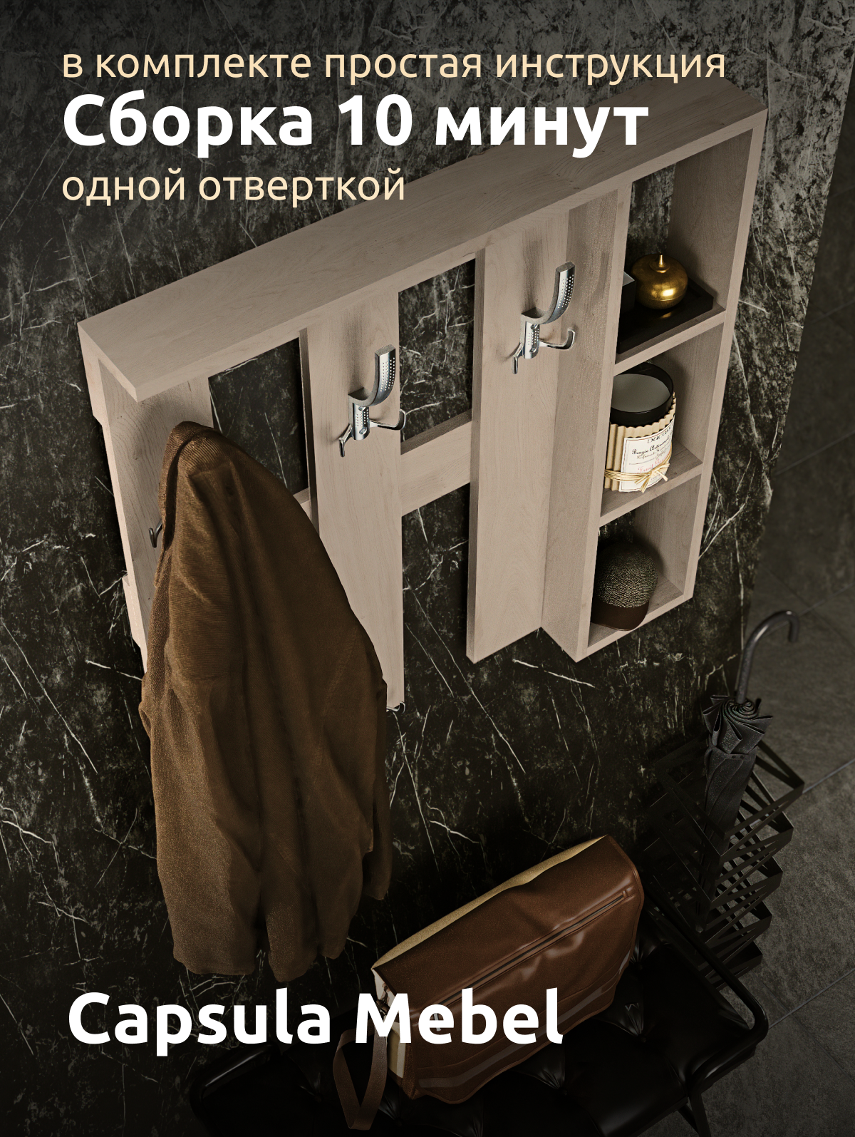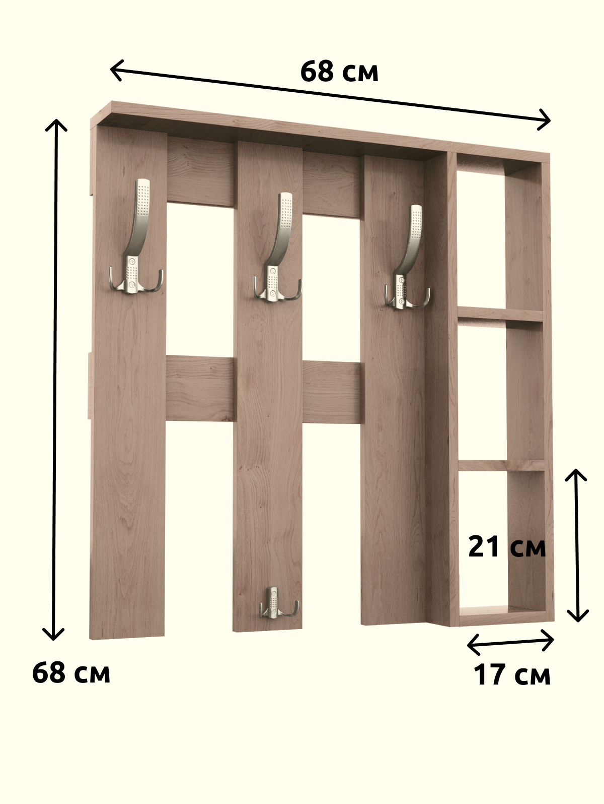Вешалка настенная ЛДСП с полками в прихожую для одежды 68x17x68 см
