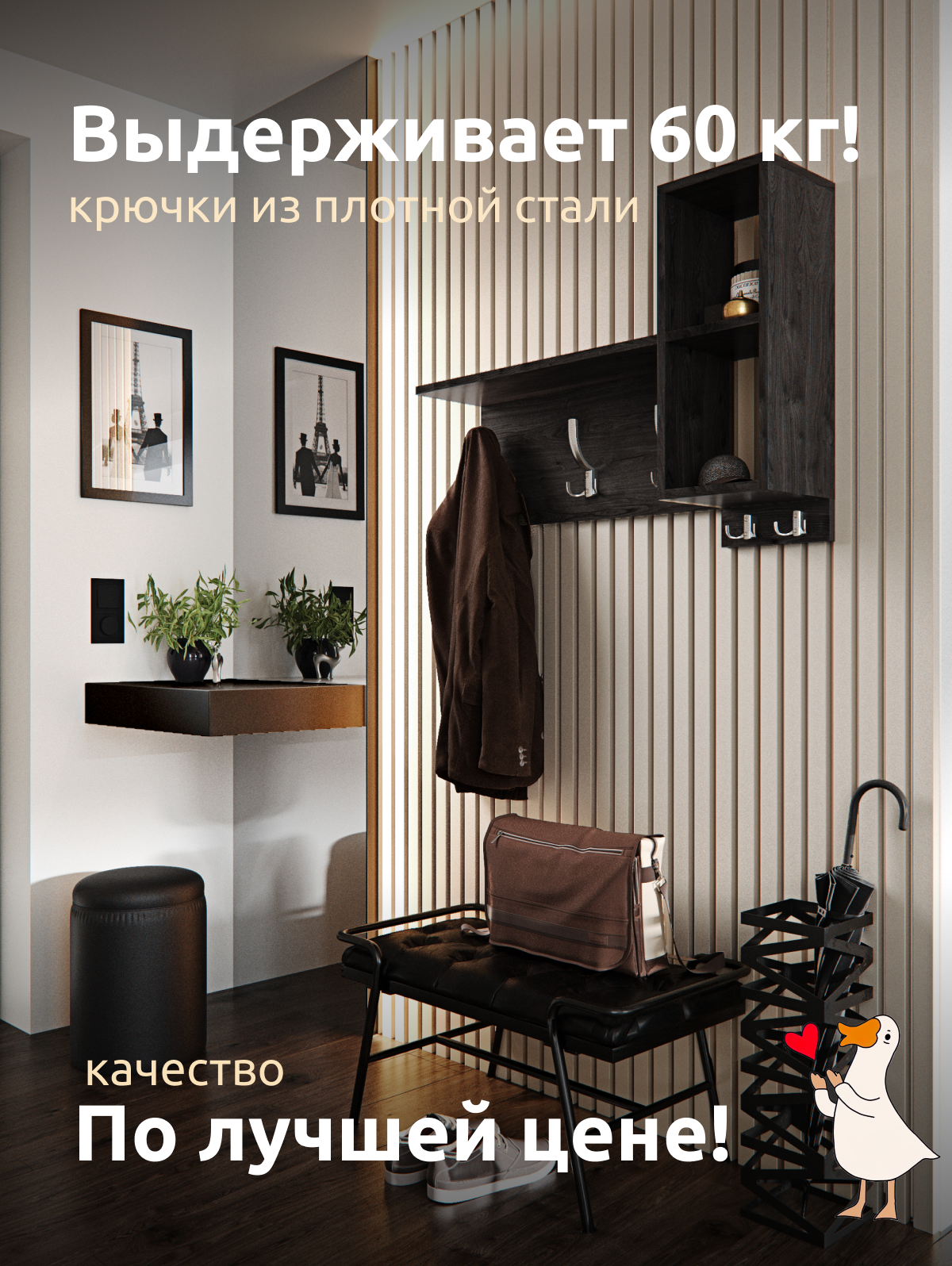 СохранитьВешалка настенная, деревянная, с полками в прихожую для одежды, цвет венге 80х20х50 см. интересное: