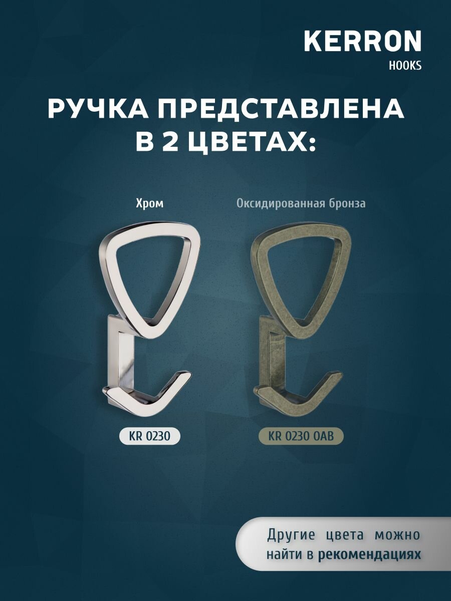 Крючок мебельный для одежды трехрожковый KERRON KR 0230 OAB, 5.9х9.7х3.1 см, материал цинк-алюминиевый сплав Zamak, цвет оксидированная бронза