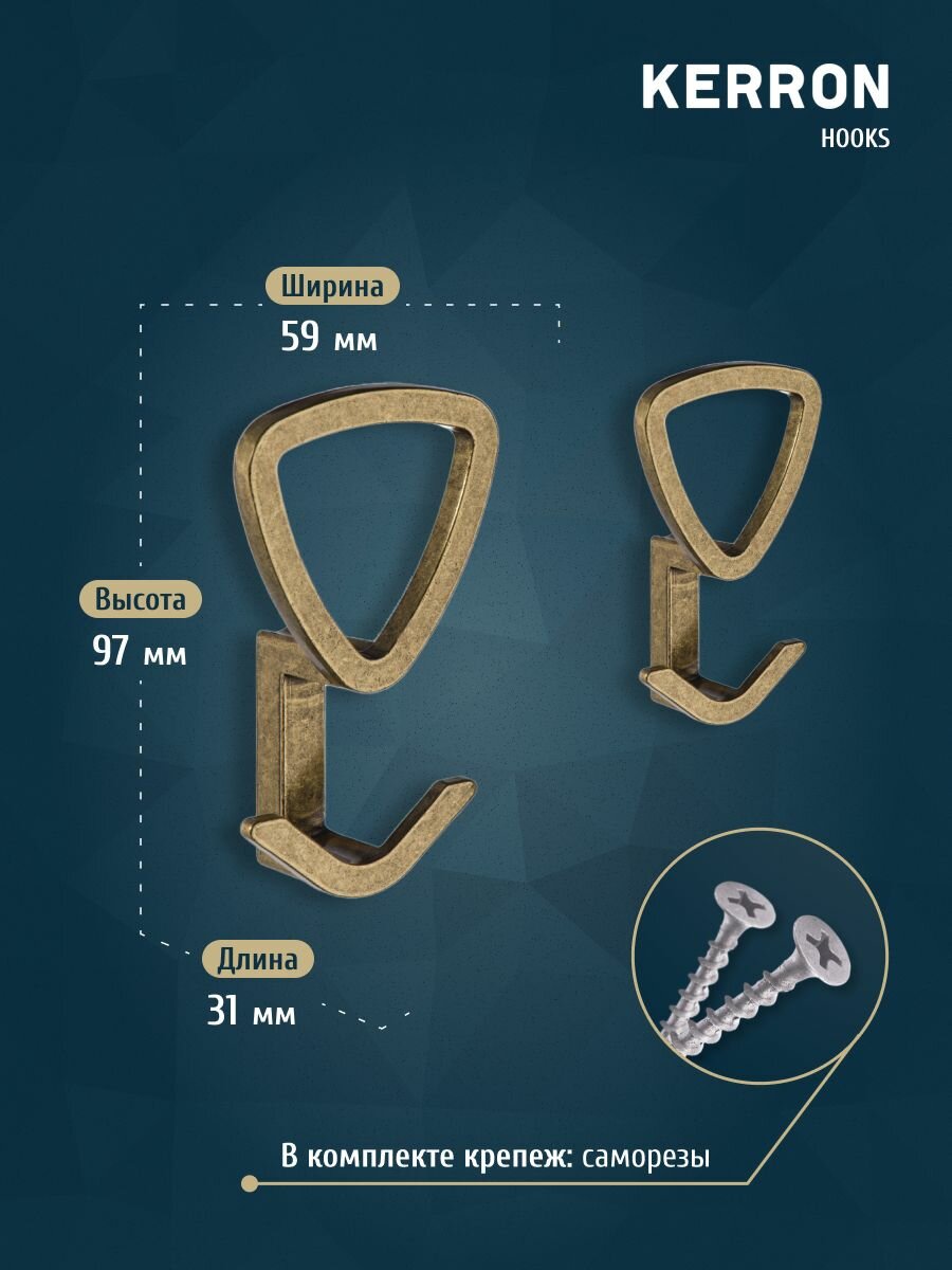 Крючок мебельный для одежды трехрожковый KERRON KR 0230 OAB, 5.9х9.7х3.1 см, материал цинк-алюминиевый сплав Zamak, цвет оксидированная бронза