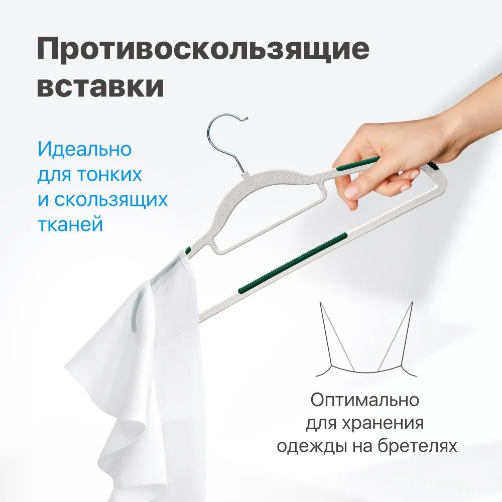 Бархатные вешалки плечики для одежды, Defender CLH-220, набор 10 шт, бежевый