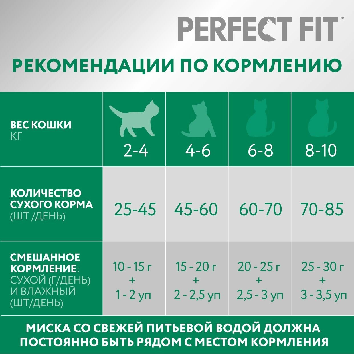 | Дополнительная информация | миска со свежей питьевой водой должна постоянно быть рядом с местом кормления |