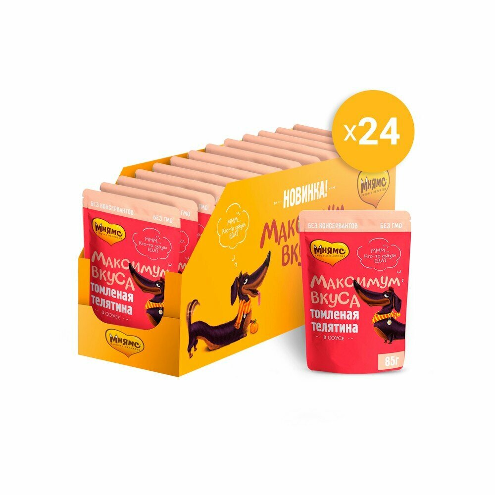 Влажный корм для собак Мнямс Максимум вкуса томленая телятина в соусе 1 уп. х 24 шт. х 85 г