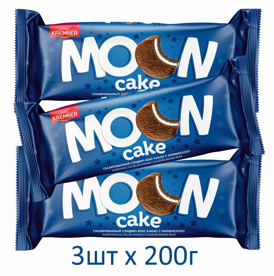 MOON CAKE 3шт х 200г Глазированный сэндвич-кекс какао с маршмеллоу KREMBER (Узбекистан) интересное: