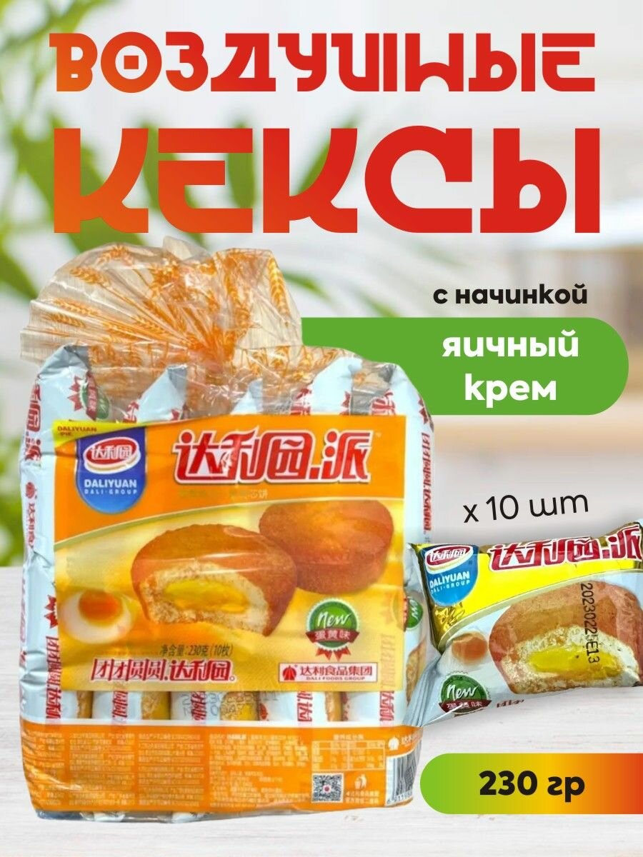 Daliyuan Pie Воздушные кексы с начинкой яичный крем / Китайский ChocoPie упаковка 230г / 10 шт интересное: