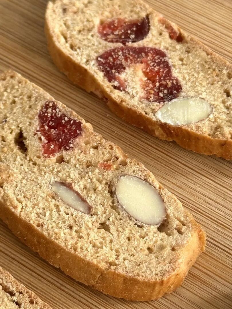 | Состав | мука безглютеновая, мука миндальная, миндальный орех, вишня на меду, меланж, желток, сироп топинамбура, разрыхлитель, экстракт ванили, цедра апельсина |