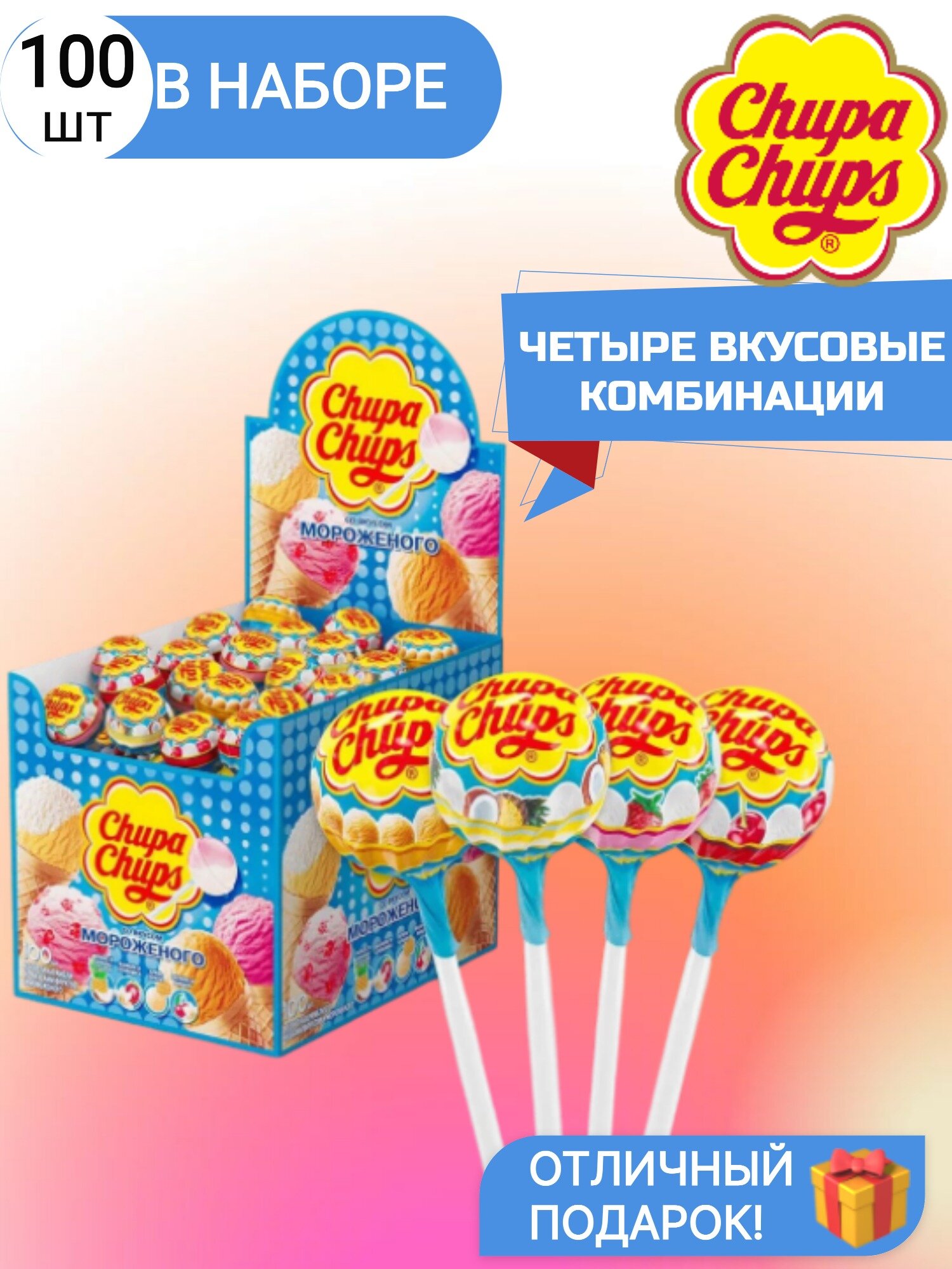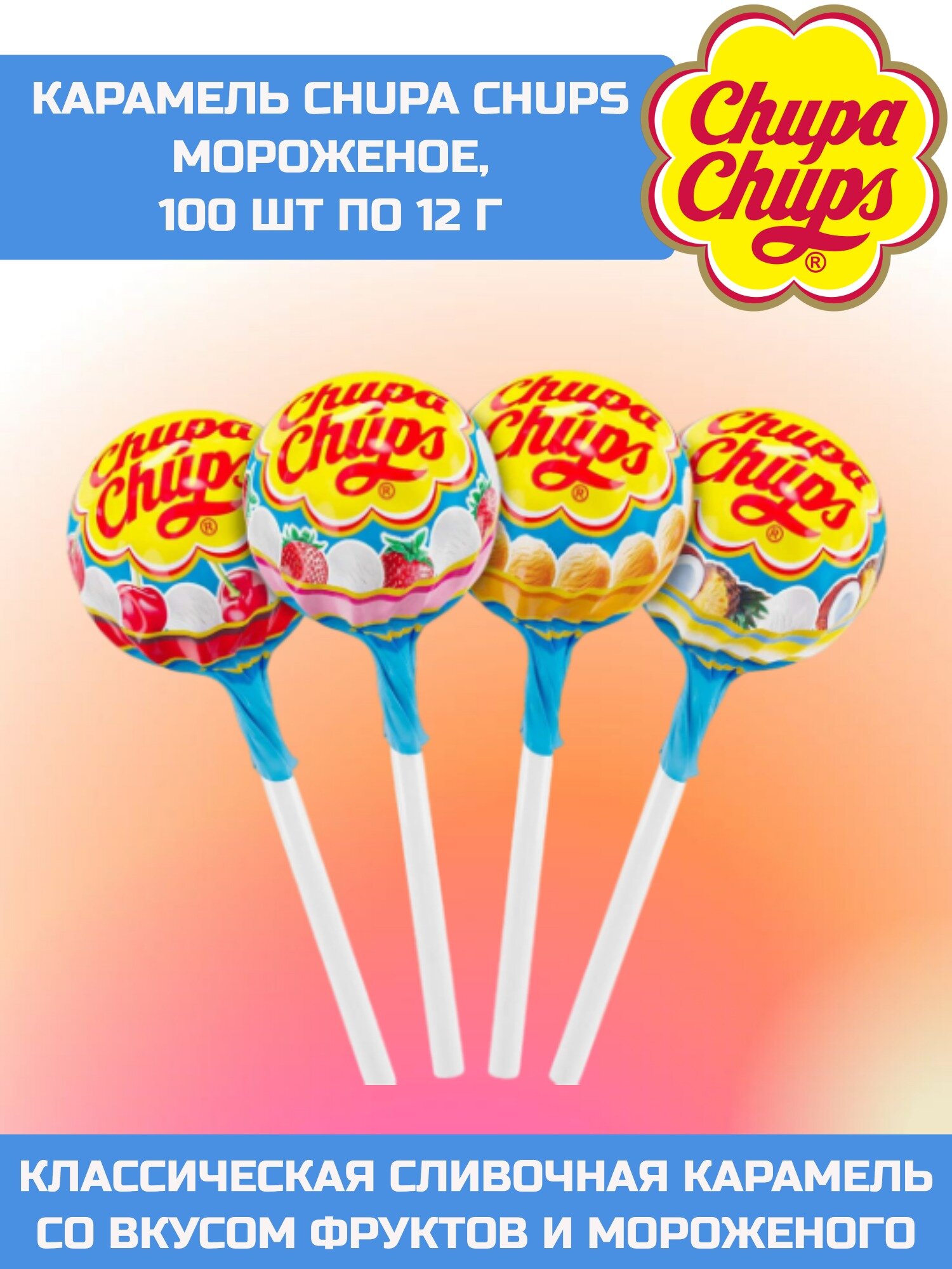 Chupa Chups Карамель на палочке со вкусом мороженого ассорти 12 г х 100 шт