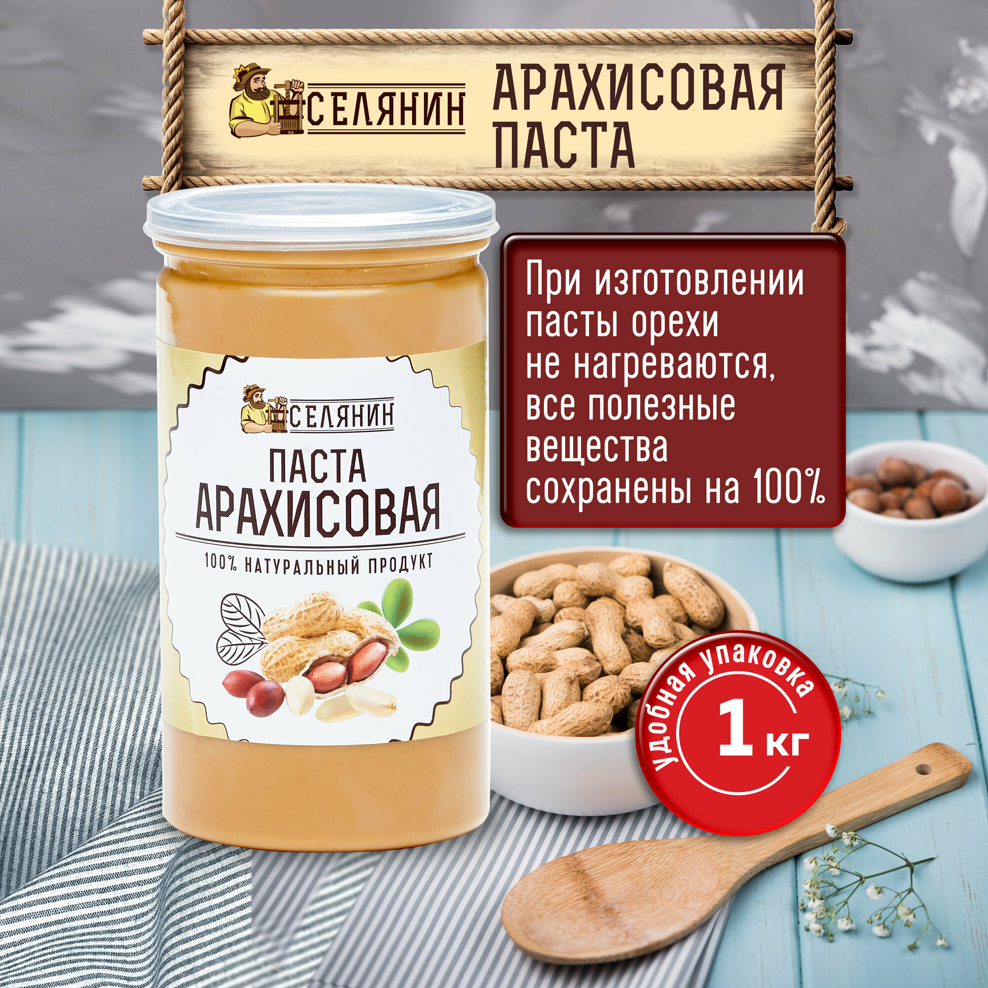 Паста арахисовая 1кг, без сахара и соли, натуральная, 100% арахис интересное: