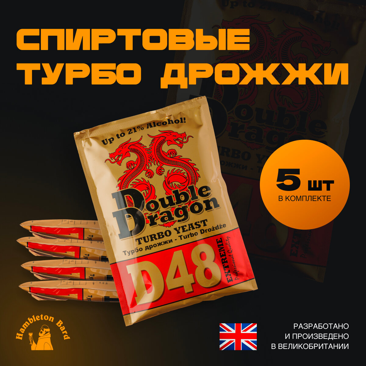 Дрожжи спиртовые Double Dragon D48 Turbo / Дабл Драгон Д48 Турбо, 5 упаковок