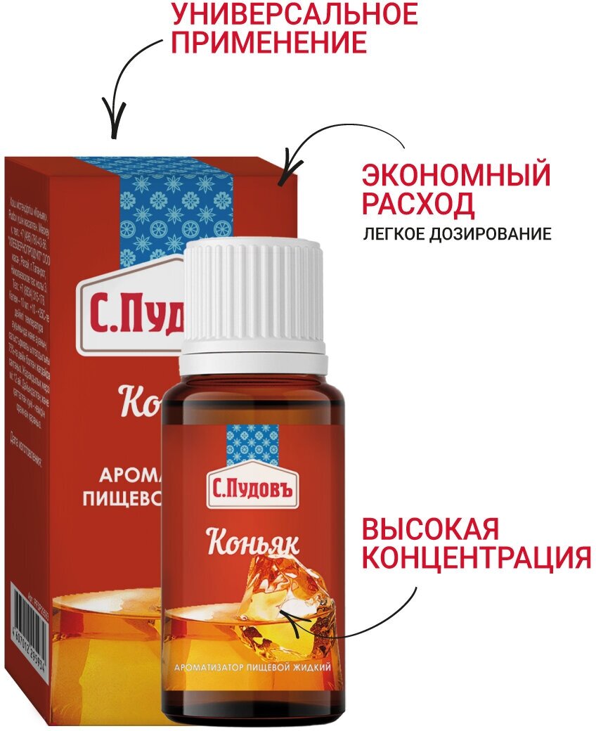 Ароматизатор пищевой Коньяк С. Пудовъ, 10 мл (для выпечки, напитков и творчества) интересное: