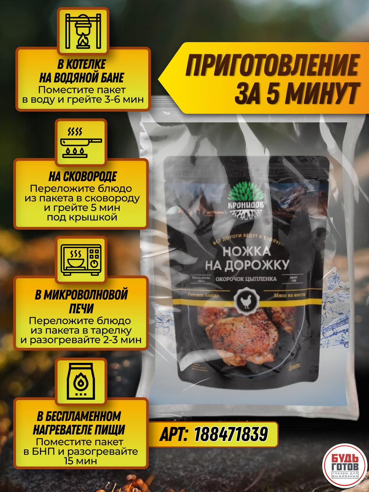 Туристическое питание Кронидов Ножка на дорожку 325 гр. еда собой / готовая еда интересное: