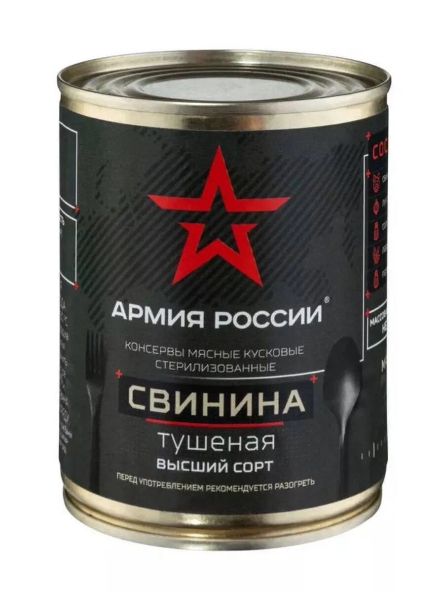 Свинина тушеная армейская Армия России 1 шт до 06.2027 интересное: