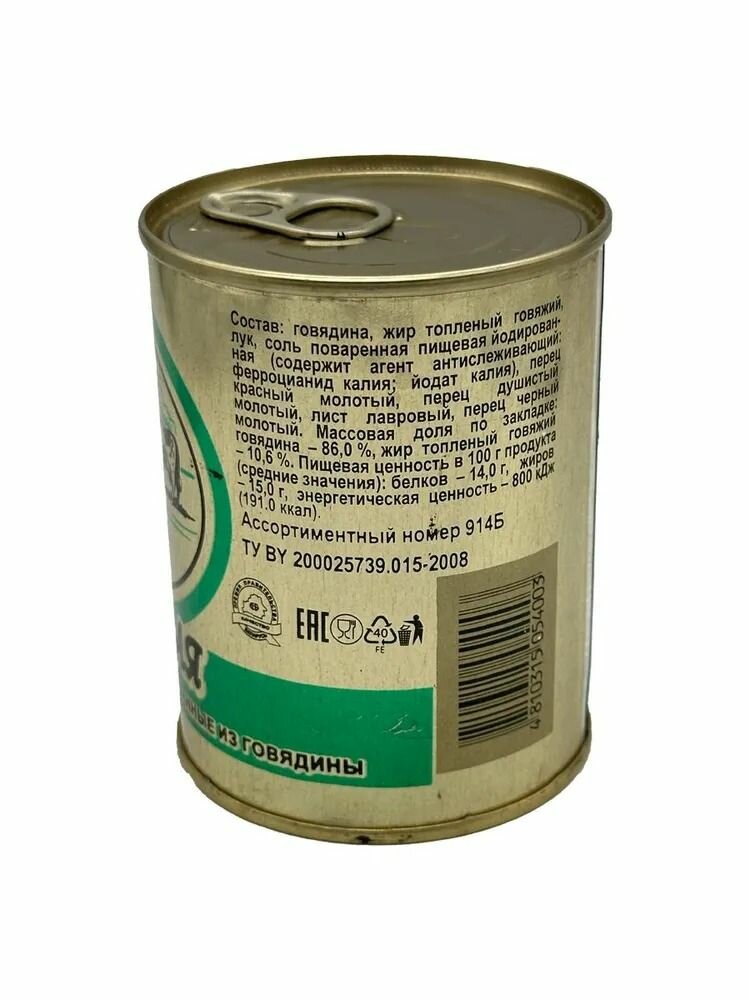 Говядина тушеная Селянская, Береза, Белорусская, 2 шт. по 338 г