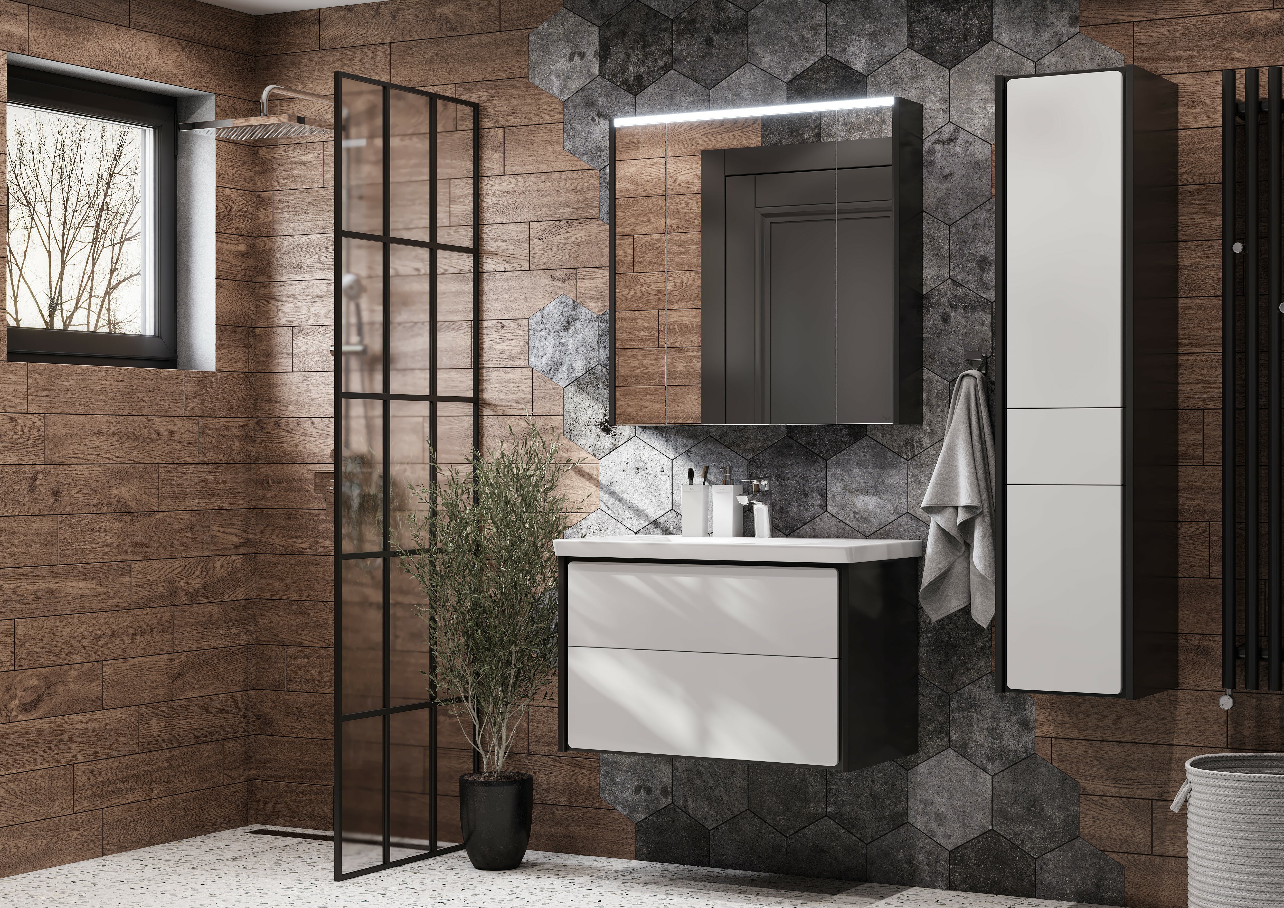 Зеркальный шкаф Roca Ronda 80 см белый глянец/антрацит ZRU9302970