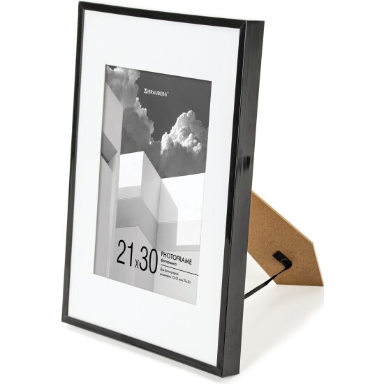 Купить Рамка Brauberg 21х30 см с паспарту 15х21 см небьющаяся, багет 5 мм, пластик, "Smart", черная, 391280