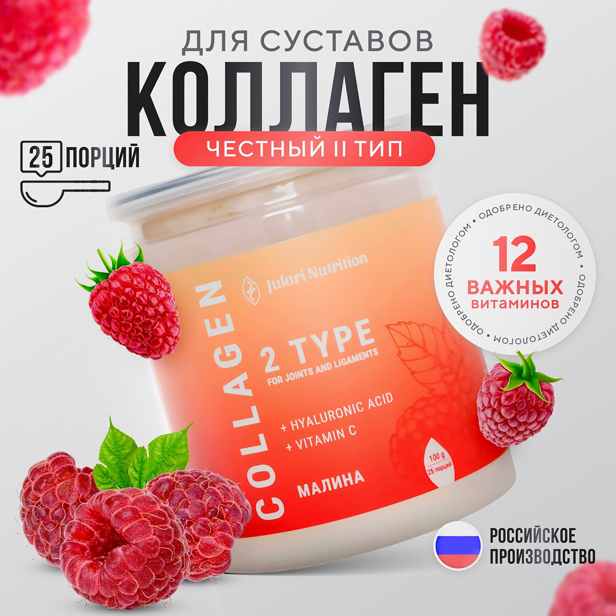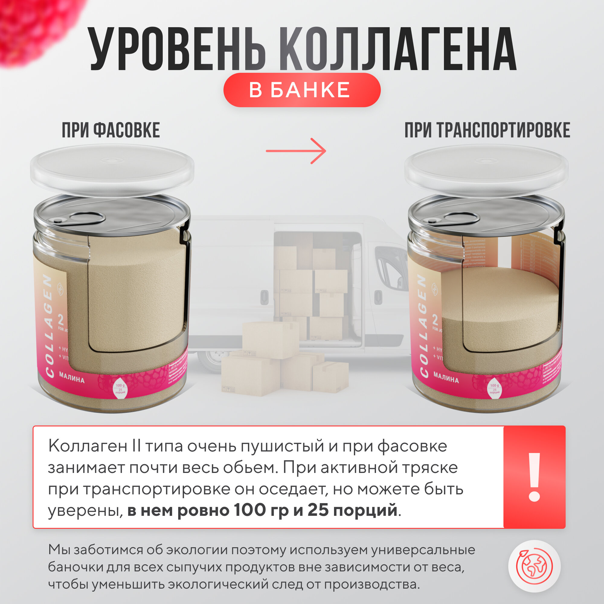 Гидролизованный коллаген 2 типа для суставов, 25 порций, 100 гр., вкус малина