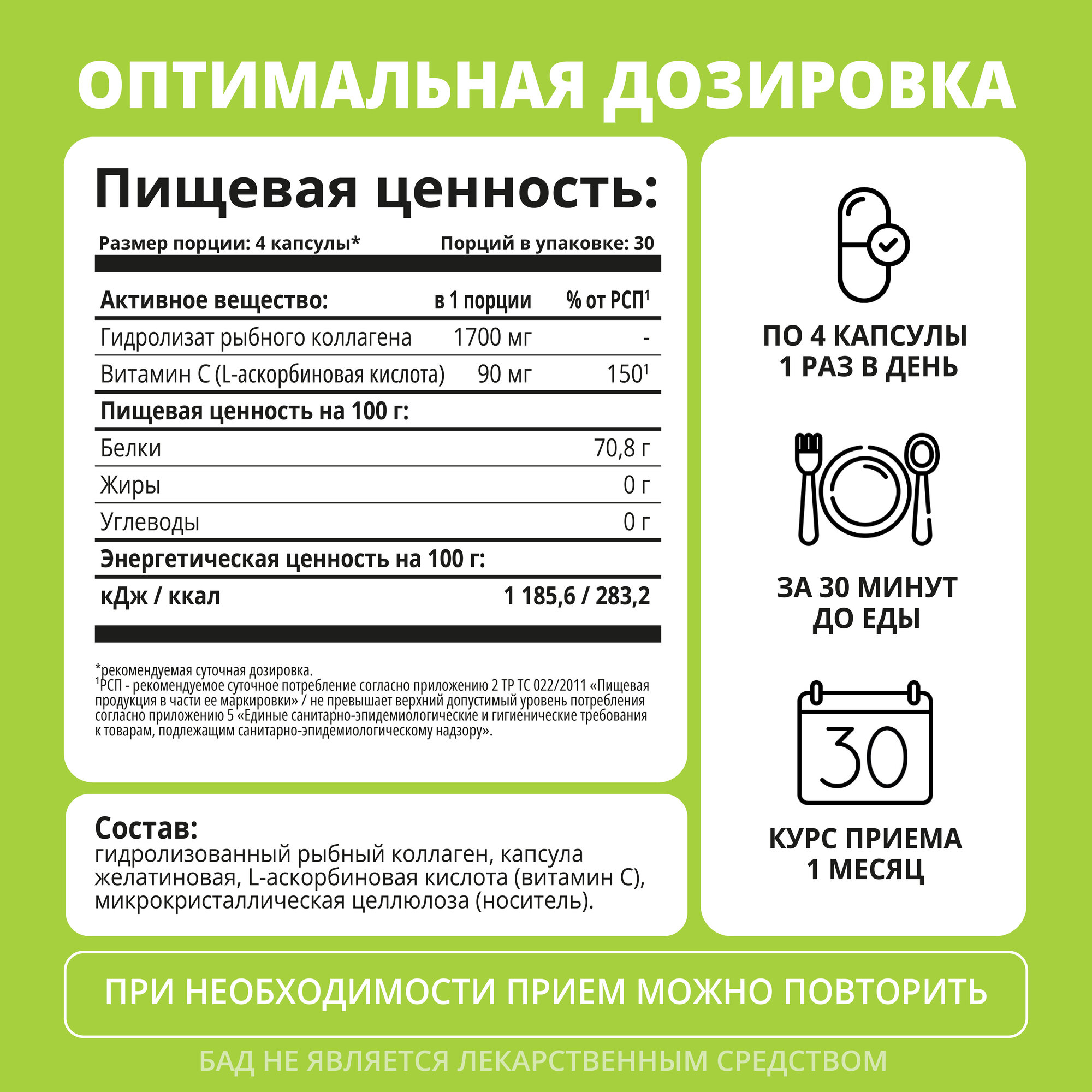 Морской коллаген (рыбный) + витамин C, для кожи, волос и суставов, 120 капсул интересное: